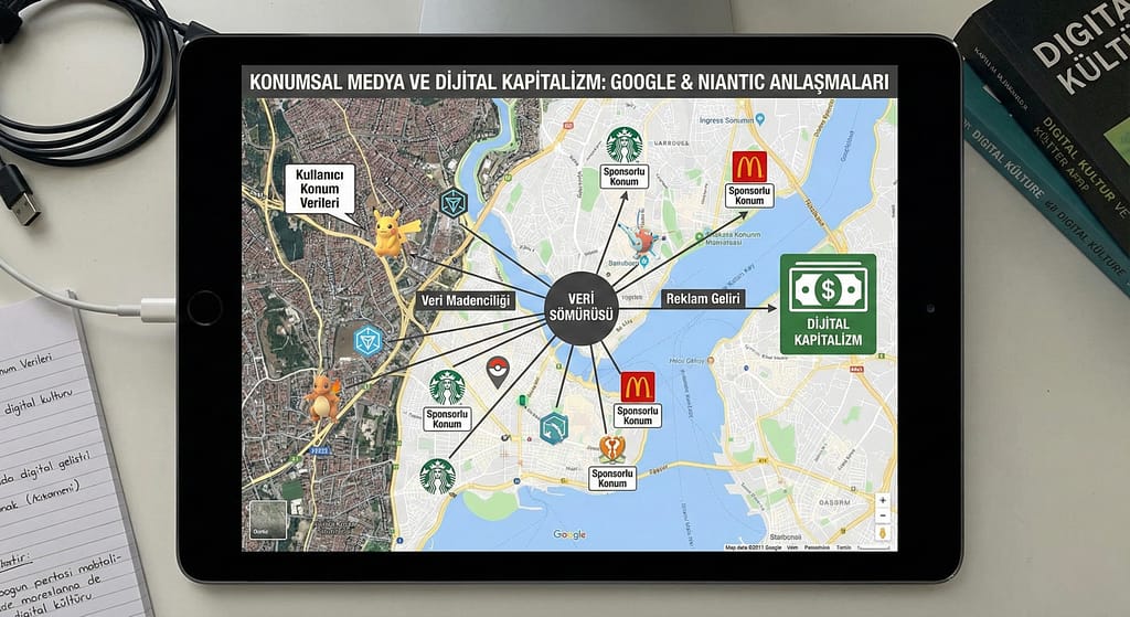 Konumsal iletişim ortamları ve harita tabanlı mecralar, sayısal sermayeciliğin temel bileşenlerinden biri hâline gelmiştir. Niantic ve Google Haritalar örnekleri, konum verisinin artık sadece uygulayımsal bilgi olmadığını, iktisadi faaliyetleri yönlendiren güç olduğunu göstermektedir.